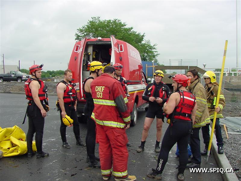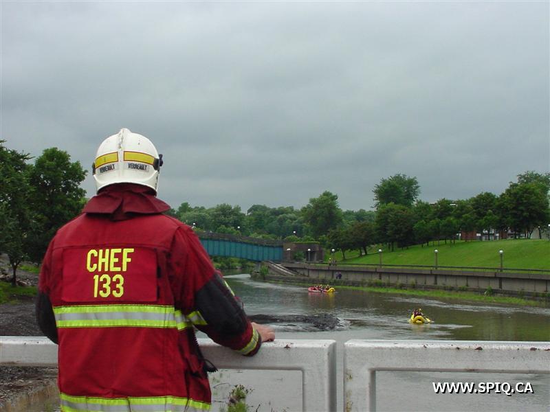 Un appel provenant de la rue Côté (secteur Hamel et Robert-Bourassa) mentionnait qu'un corps avait été vu flottant dans la rivière Str-Charles à cette hauteur. Des recherches effectuées par les équipes les ont fait explorer les eaux jusqu'au boulevard des Capucins sans rien trouver. L'opération s'est terminée à 13h03.