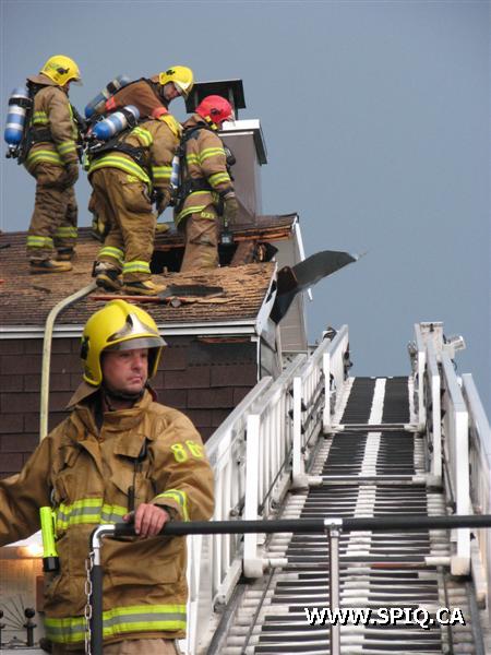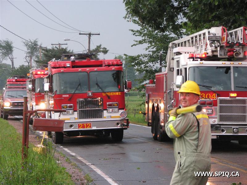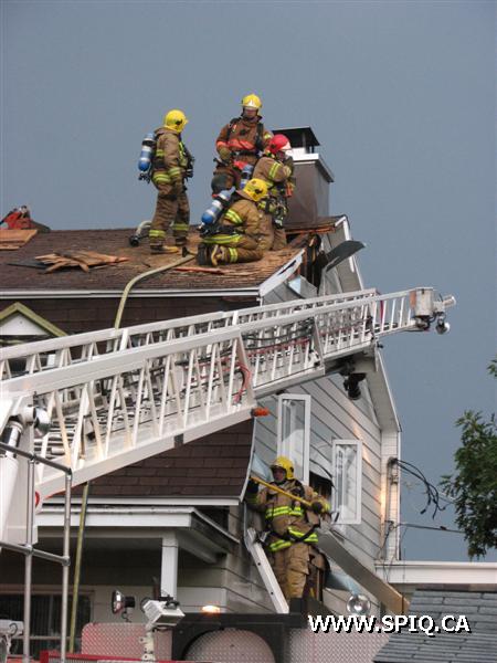 Les pompiers de Québec ont été fort occupés hier matin, lorsque de violents orages ont frappé la Ville. Ils ont dû répondre à plusieurs appels pour des arbres tombés, des fils électrique arrachés, des transformateurs en feu, des dégâts d'eau ainsi que des systèmes d'alarmes en opération. Les photos ici-bas montrent un appel où les pompiers sont intervenus pour un arbre qui s'est déraciné et qui arraché un mat électrique, ce qui a eu pour conséquence de déclarer un incendie.