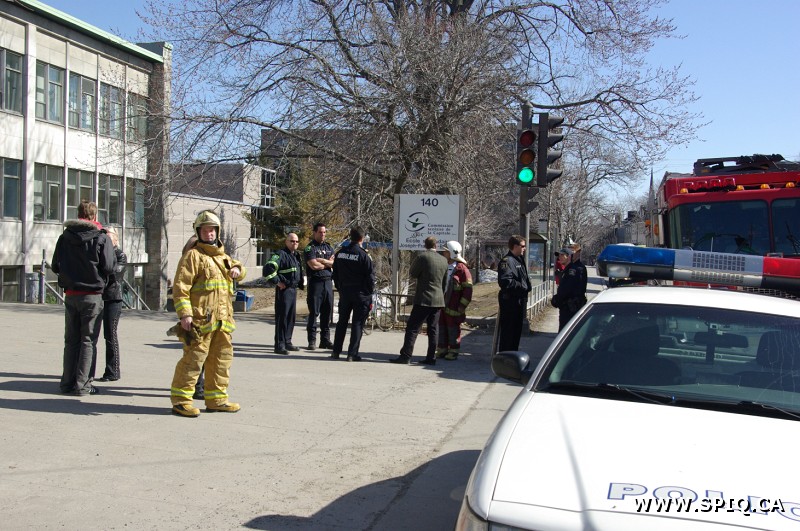 Avant même l'arrivée rapide du 201 situé tout prêt de là, l'évacuation des étudiants était commencée. L'équipe du 201 procèdait aux premières vérifications en attendant l'équipe Hazmat du 913. Après une longue série de détection et mesures, aucune lecture positive n'était enregistrée et la réintégration des étudiants fut recommandée.