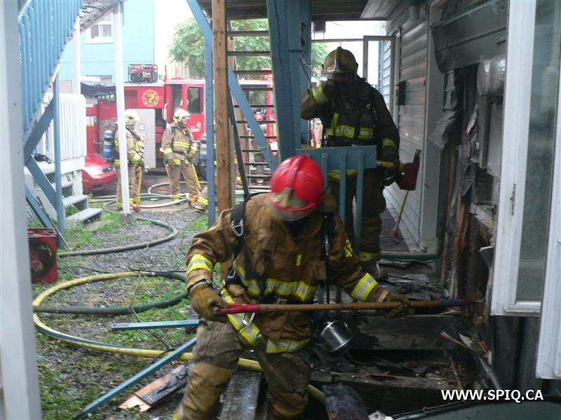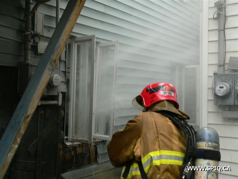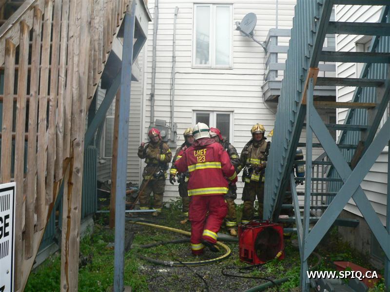 Début d'incendie au sous-sol d'un bâtiment résidentiel. L'appel fait au 911 par une voisine mentionne qu'il y aurait de la fumée et des flammes qui sortent du sous-sol de la maison voisine. En arrivant sur les lieux, la première unité mentionne l'intervention nécessaire. Le feu a rapidement été éteint au sous-sol et des vérifications ont été faites pour s'assurer qu'il n'y ait pas de propagation.