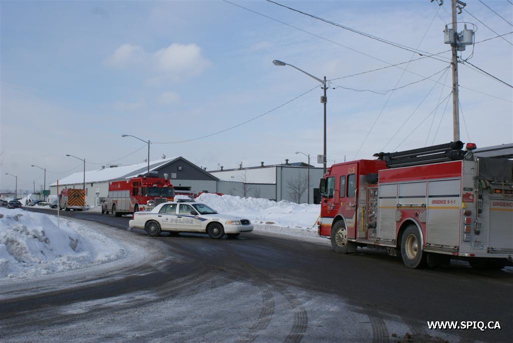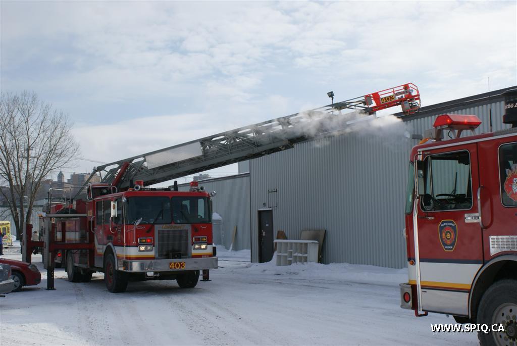 Une 1ère alarme est donnée pour un feu dans un baril de poussières de magnésium à l'entreprise Acier inoxydable Den-Mar Inc. du quartier industriel St-Malo.