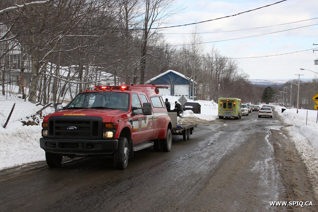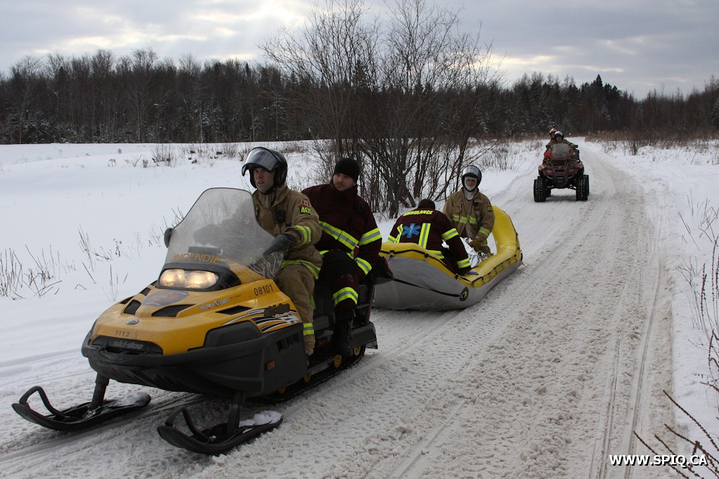 Les pompiers de la caserne 12 ont eu à intervenir, avec le véhicule 1112, dans le secteur de la Route Jean-Gauvin pour un accident de motoneige. La victime, seule sur sa motoneige, a frappé un arbre et se plaint de douleurs au dos.