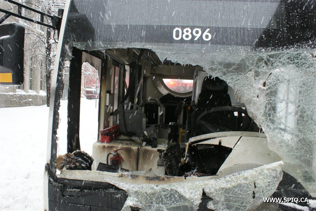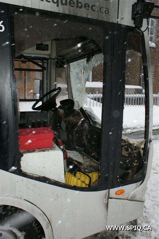 Un autobus "Écolobus" électrique du RTC a été très lourdement endommagé par un incendie qui a débuté dans le tableau de bord de l'appareil alors qu'il se trouvait sur la Rue St-Amable à la hauteur de la Rue Claire-Fontaine.