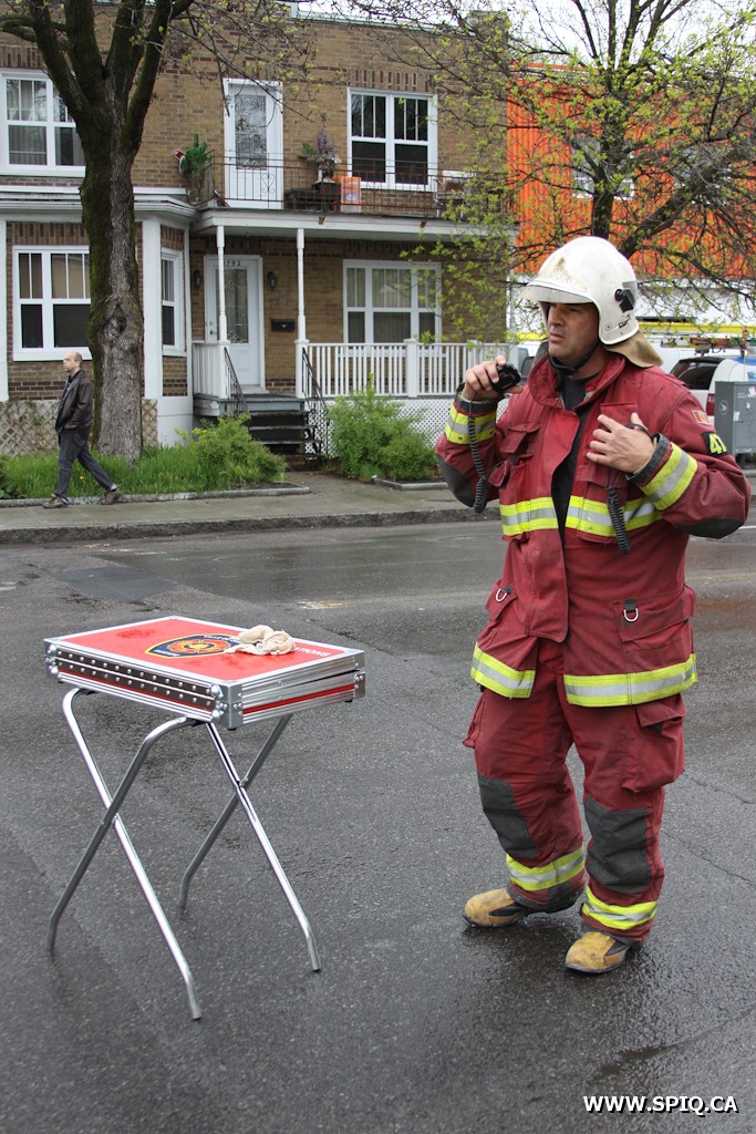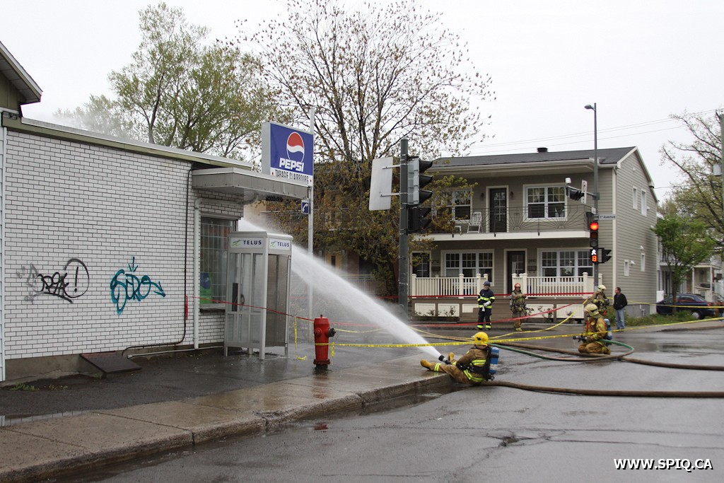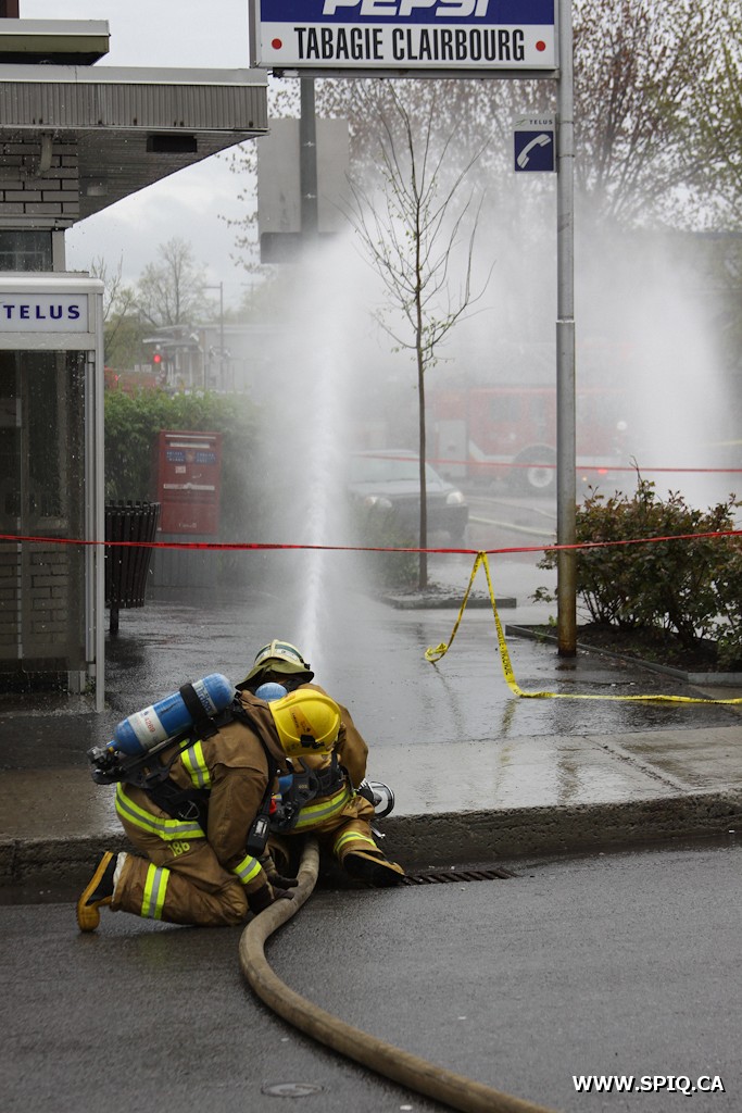 L'appel est entré à la centrale 911 par des citoyens, suite à la perforation d'une conduite de gaz par un paysagiste. Avant même que la centrale 911 ait le temps de donner les détails aux intervenants, le chef Messier (143) signale qu'une forte odeur de gaz est perceptible à la sortie de la caserne. À sa demande, la compagnie Gaz Métro sera alors requise d'urgence sur les lieux. La fuite est rapidement localisée à l'intersection de la 1ere Avenue et de la Rue des Chênes Ouest, soit face à la tabagie Clairbourg.