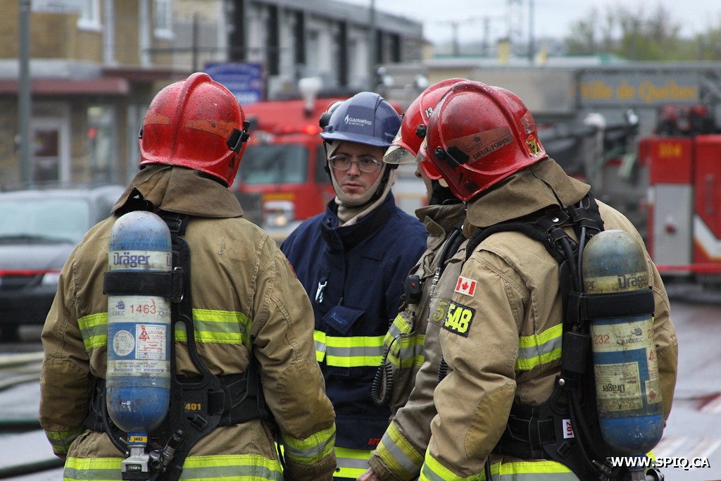 Le sifflement et l'odeur du gaz sont très perceptibles, cependant il est difficile de localiser la fuite lors des premiers instants de l'intervention. Une évacuation des commerces et des résidences du secteur sera alors requise. Alors que le gaz migre dans le sol depuis de longues minutes, la source de la fuite est soudainement perceptible alors que des bulles se forment au pied d'un arbre dans une plate-bande. Il est d'ailleurs possible de voir le jet de gaz s'échapper de la terre. Une lance de protection sera alors mise en place et Hydro-Québec sera demandé sur les lieux pour isoler les bâtiments en électricité.