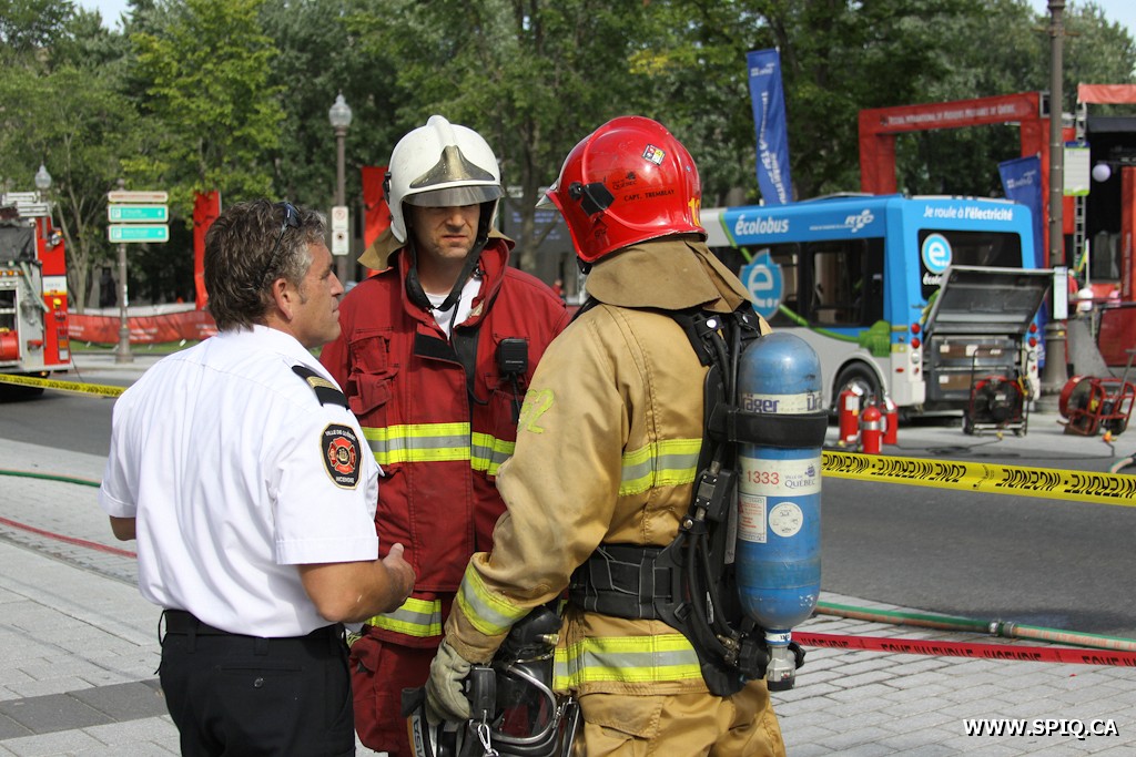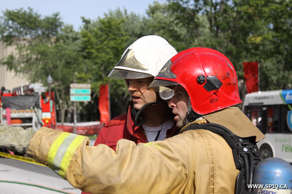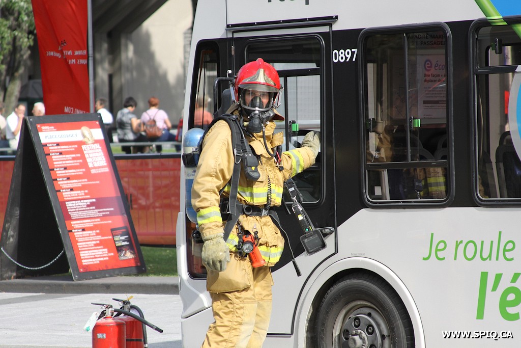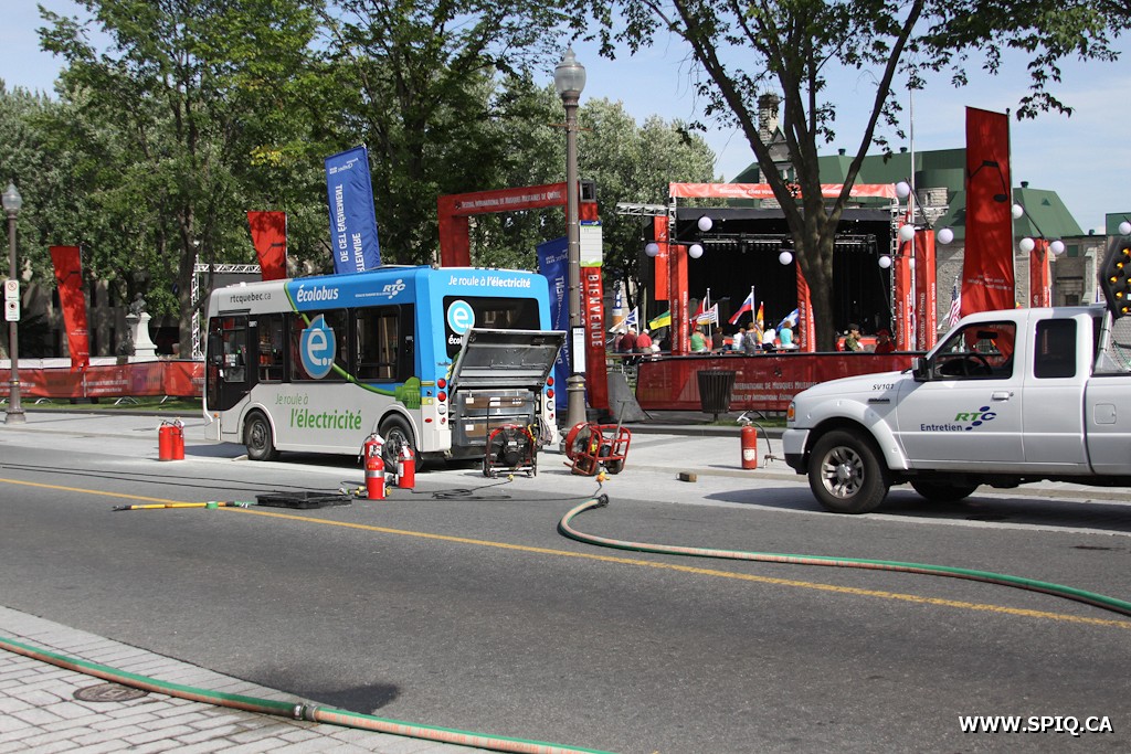 L'incident se déroule à l'intersection de la Grande Allée Est et de la Place George-V Ouest, tout juste devant les ruines du Manège militaire. En route pour l'intervention, l'officier du 201 demande la coopération du 913 alors que la répartition du 911 lui signale qu'il s'agit d'un Écolobus. Sur les lieux, l'officier du 201 confirme les flammes visibles au niveau de la batterie, elles sont cependant rapidement éteintes avec un extincteur à poudre. Les lectures à la caméra thermique confirment cependant que la température monte au niveau des batteries.