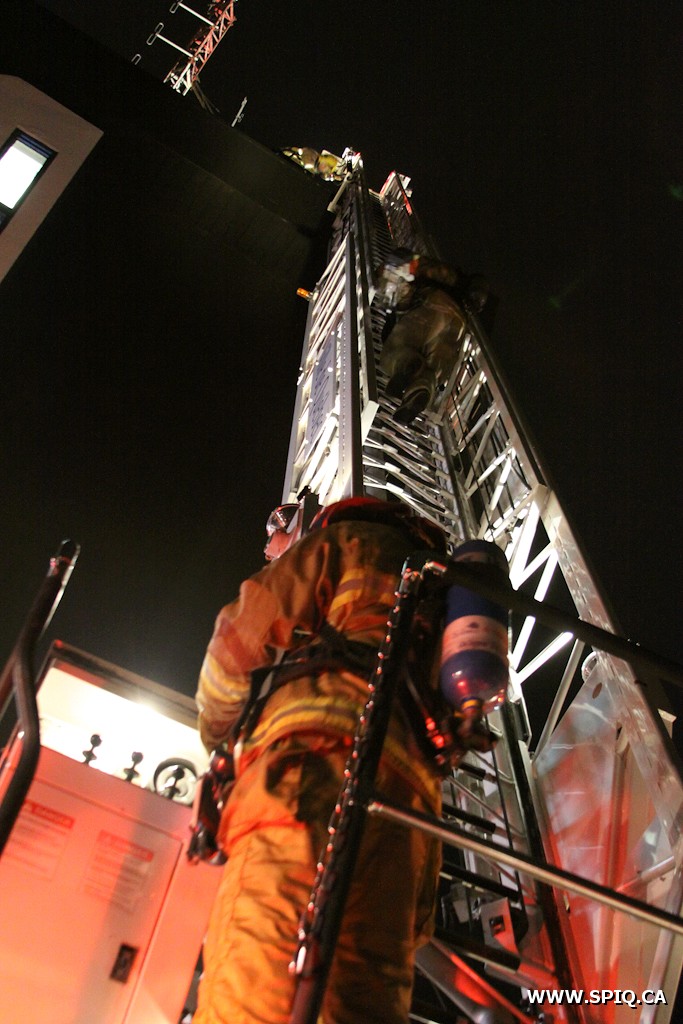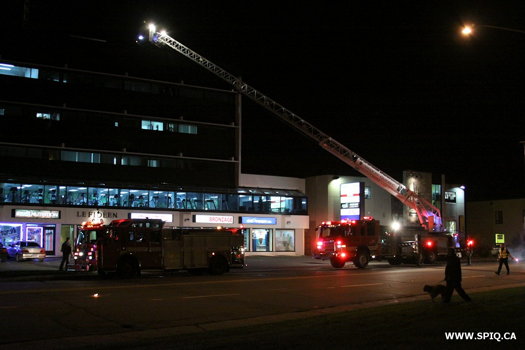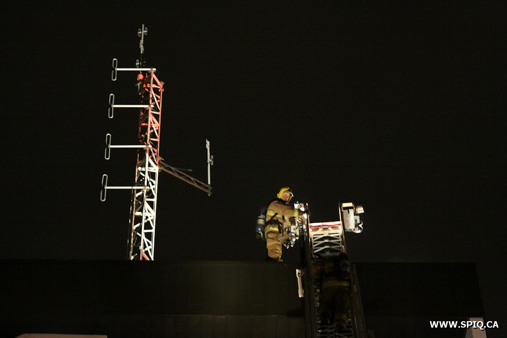 L'appel est initialement donné au véhicule 209 pour une vérification incendie. Les informations logées à la centrale 911 font mention d'une odeur de plastique brûlé à l'intérieur du bâtiment. Suite aux vérifications d'usage, l'officier du 209 demande de compléter la première alarme; l'odeur se fait persistante et une légère fumée est présente au rez-de-chaussée. Plusieurs équipes font leurs vérifications au toit, ainsi que dans le système de ventilation. Des vérifications au dernier étage du bâtiment (5e étage), permettent aux pompiers de localiser le foyer d'incendie. La fumée y est abondante, et provient d'un local isolé. On déclare alors l'intervention nécessaire.