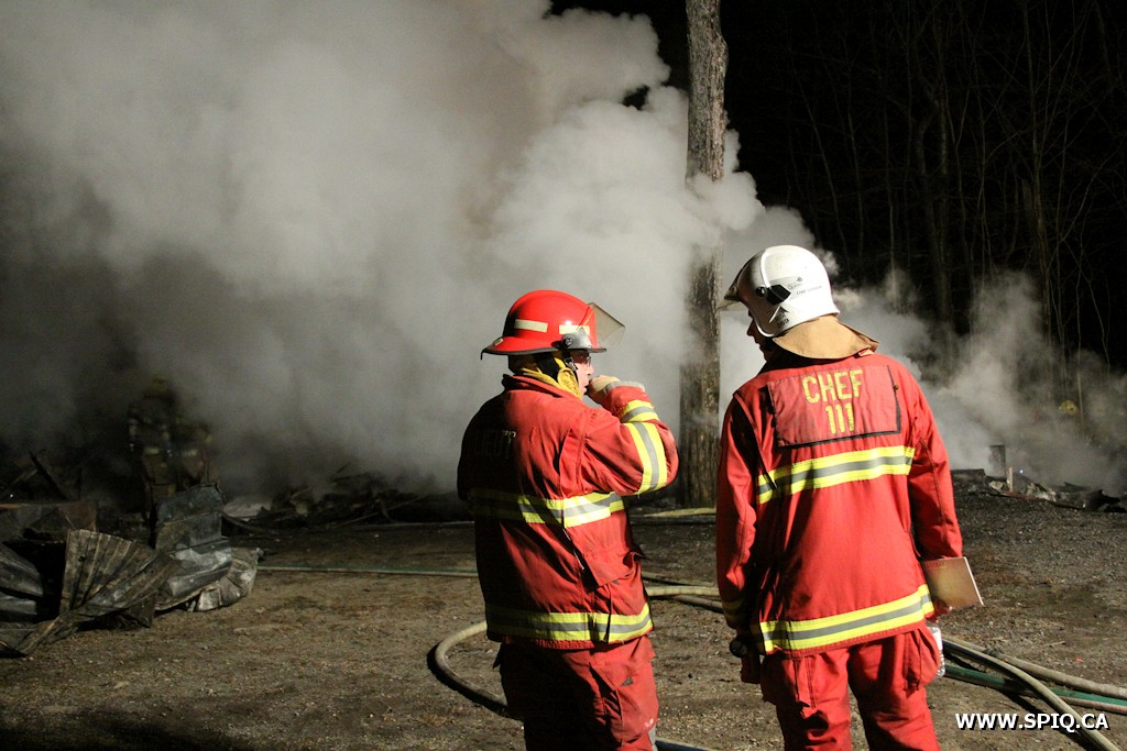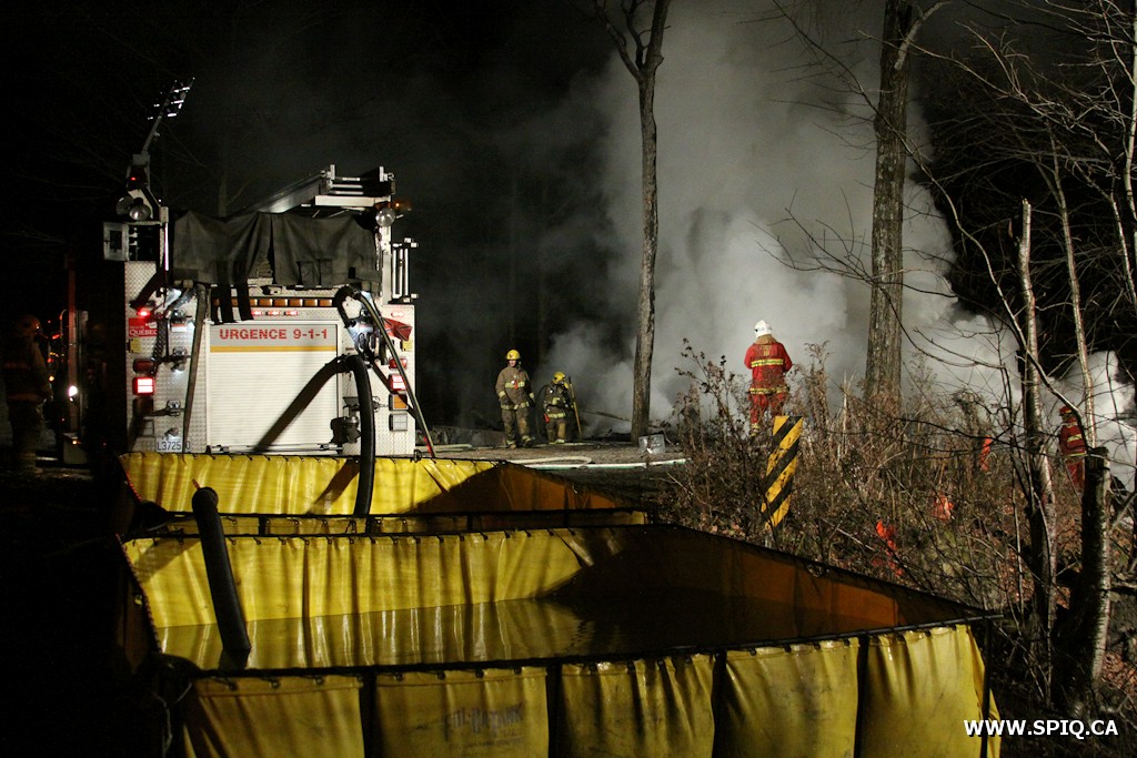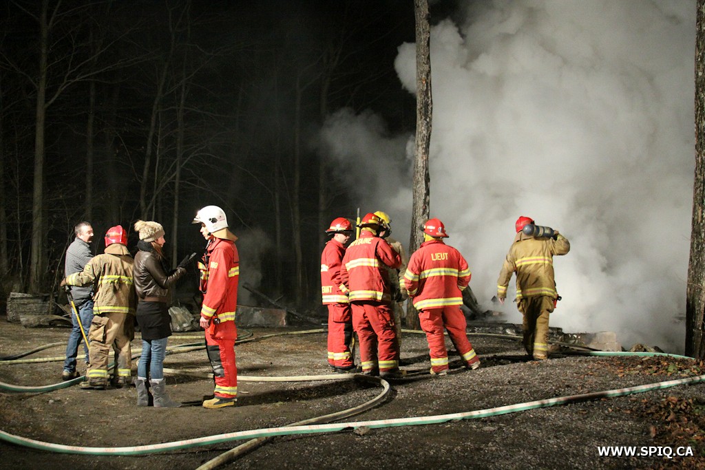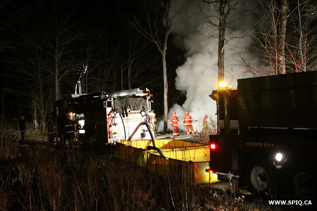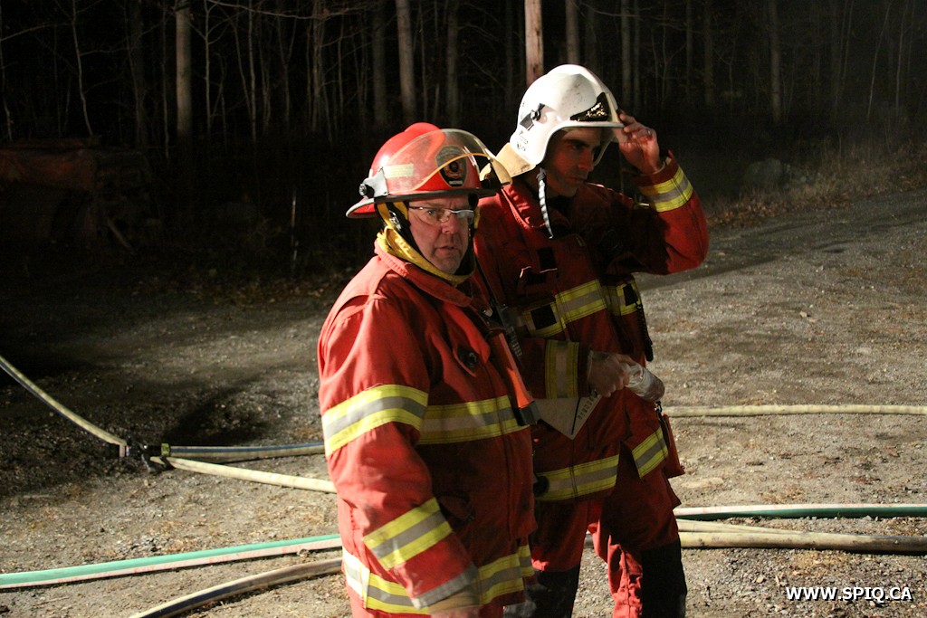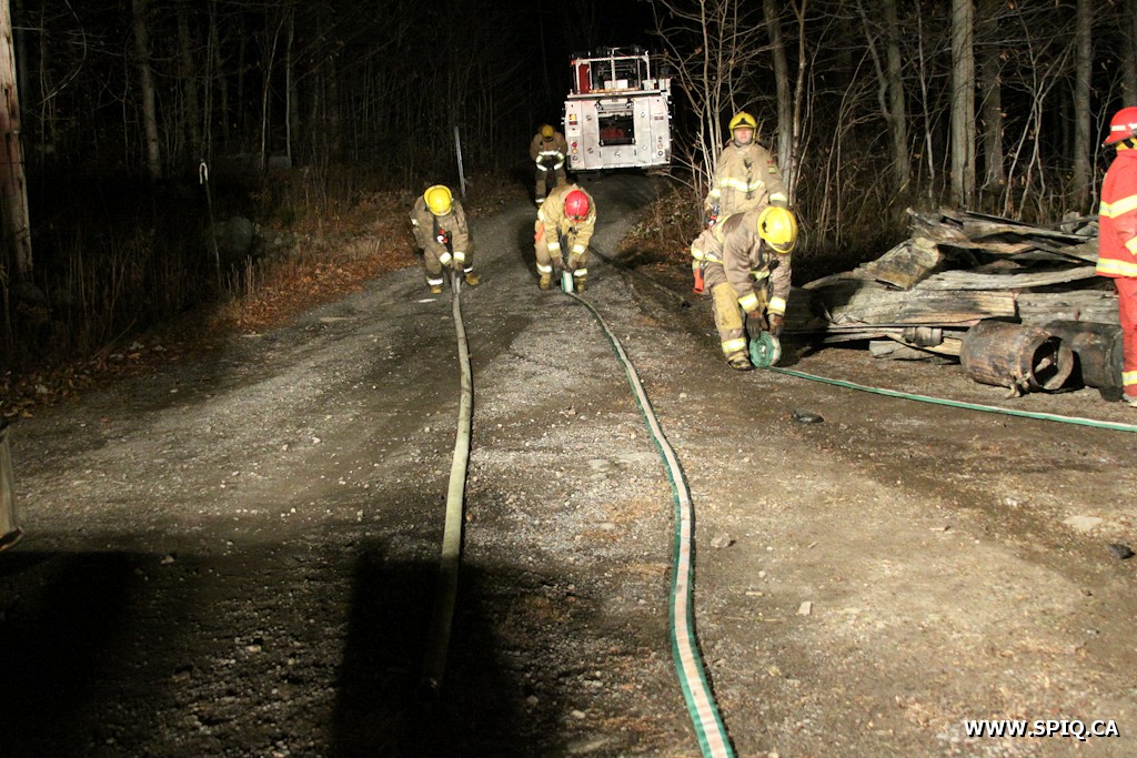 L'accès pour se rendre sur les lieux de l'incendie est difficile. À partir de la route de Fossambault, les intervenants devront parcourir environ deux kilomètres sur un chemin forestier en terre battue. Finalement arrivés sur les lieux, les intervenants font face à un incendie complètement éclaté dans une érablière. Le bâtiment étant isolé en forêt, l'alimentation en eau se fera à partir des citernes à l'intersection de la Route de Fossambault et du Rang des Mines.