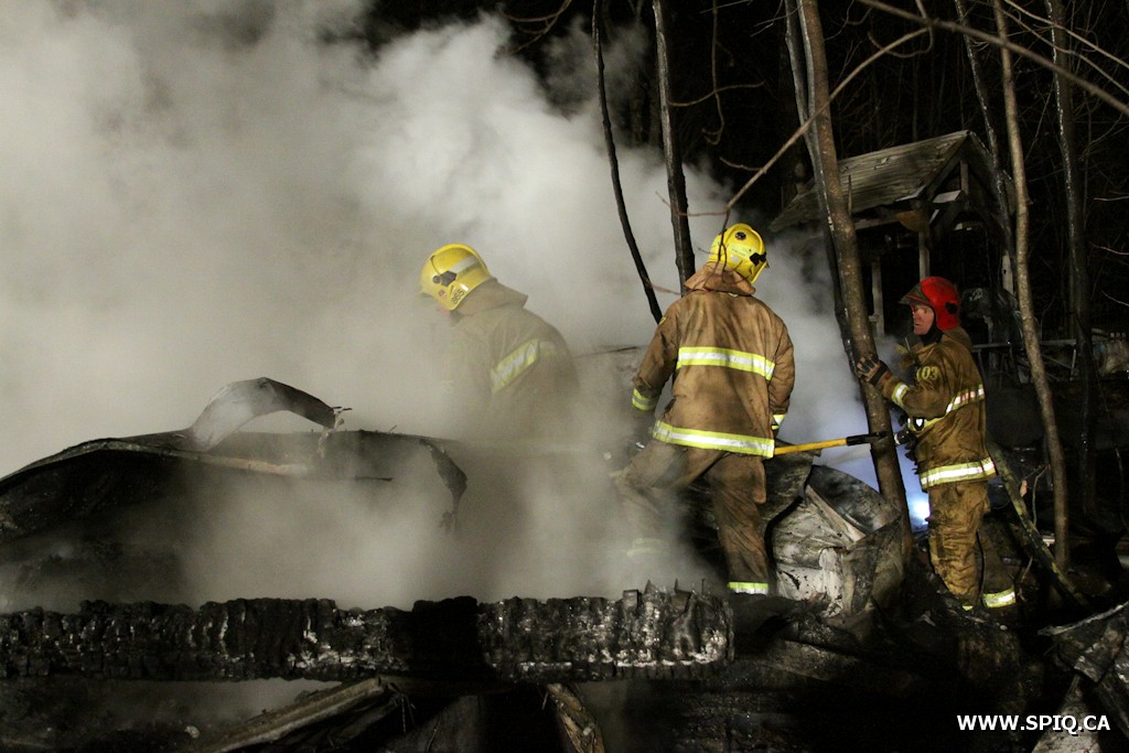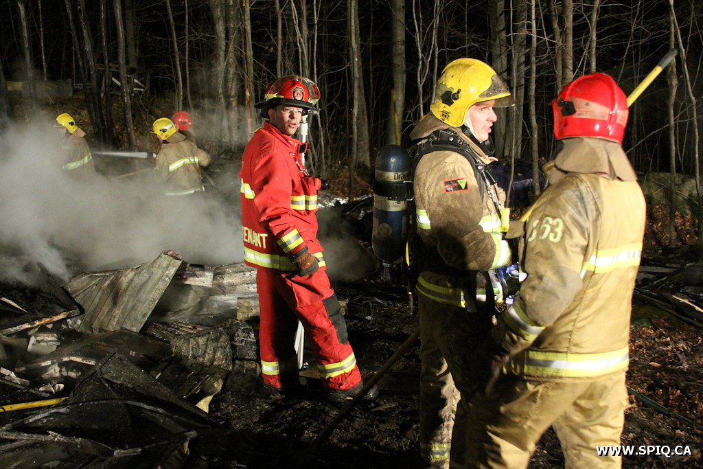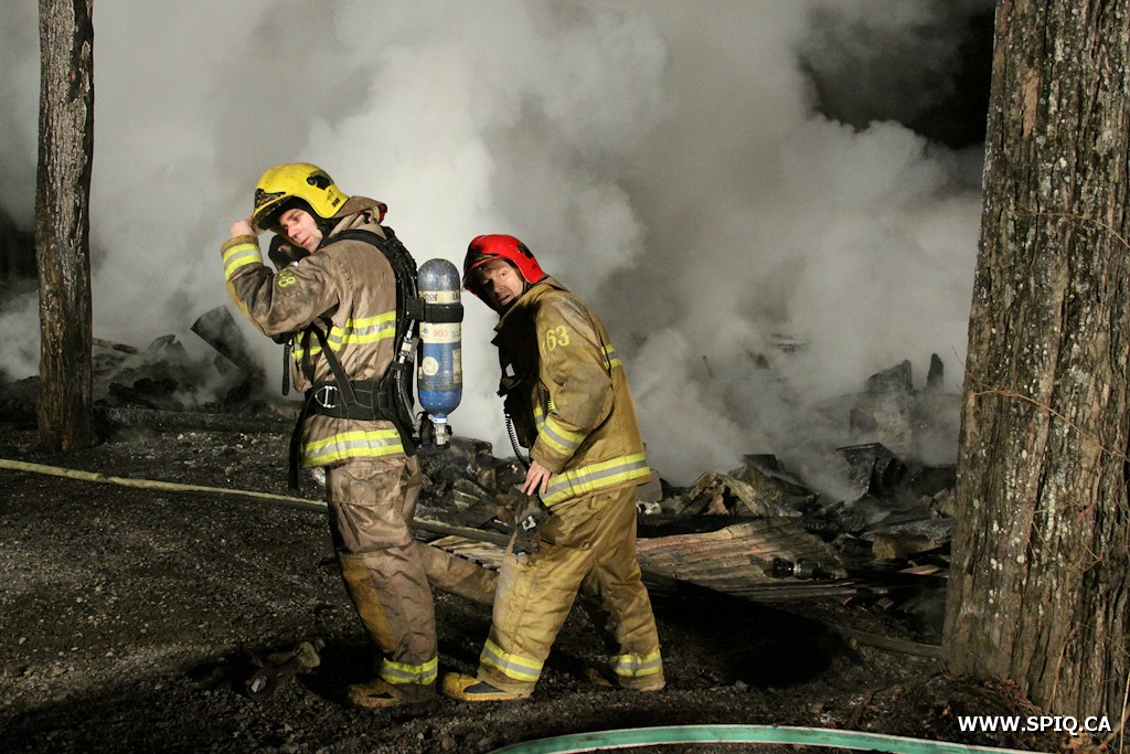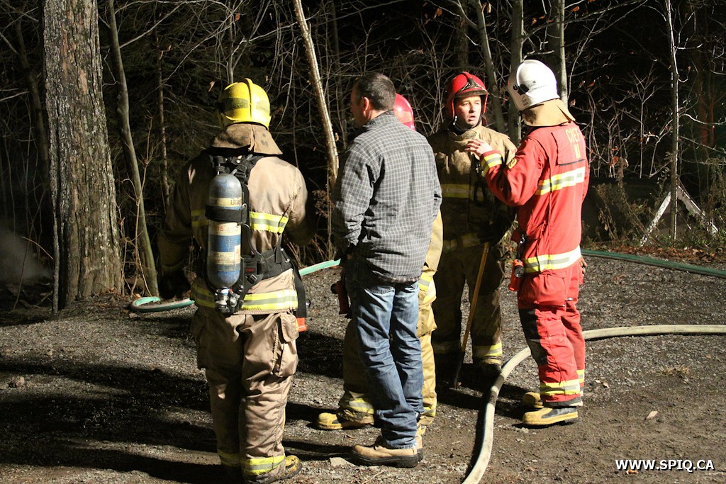 Peu de temps après le début de l'attaque, le service des incendies de Sainte-Catherine-de-la-Jacques-Cartier a été appelé en coopération, compte tenu que l'intervention se situait sur leur territoir. Les pompiers de Québec et de Sainte-Catherine-de-la-Jacques-Cartier se sont répartis les tâches d'extinction. Une fois le gros des flammes rabbatues, vers 00h15, les pompiers de Québec ont procédé à la récupération de leur matériel et ont laissé la scène aux pompiers locaux.