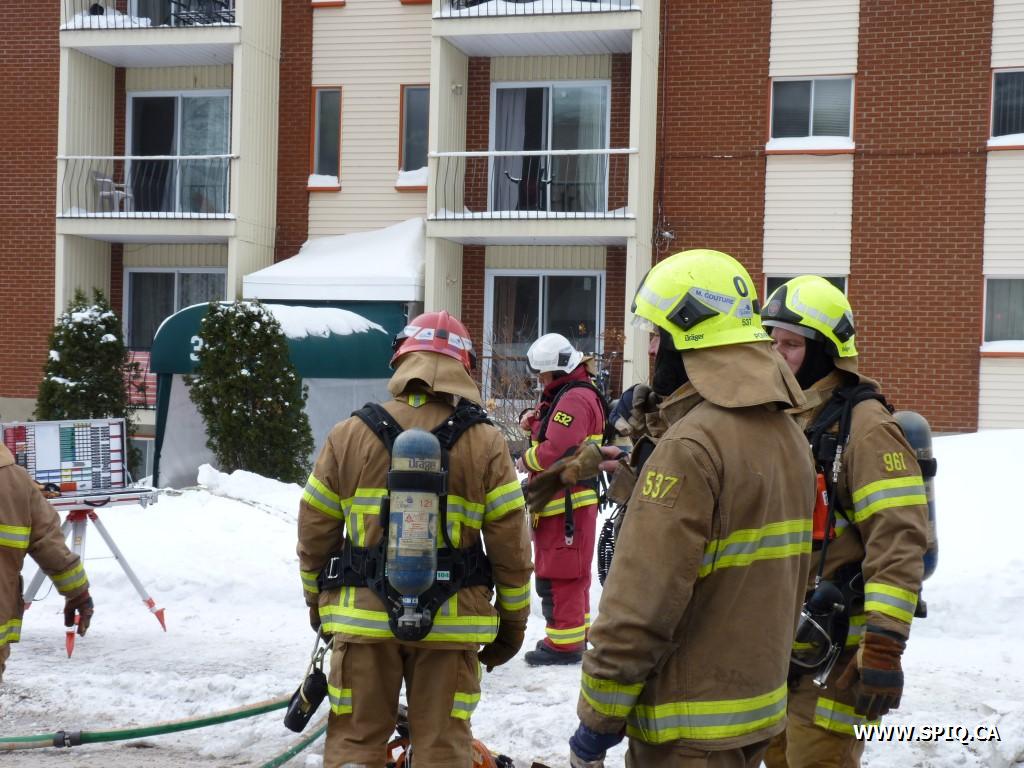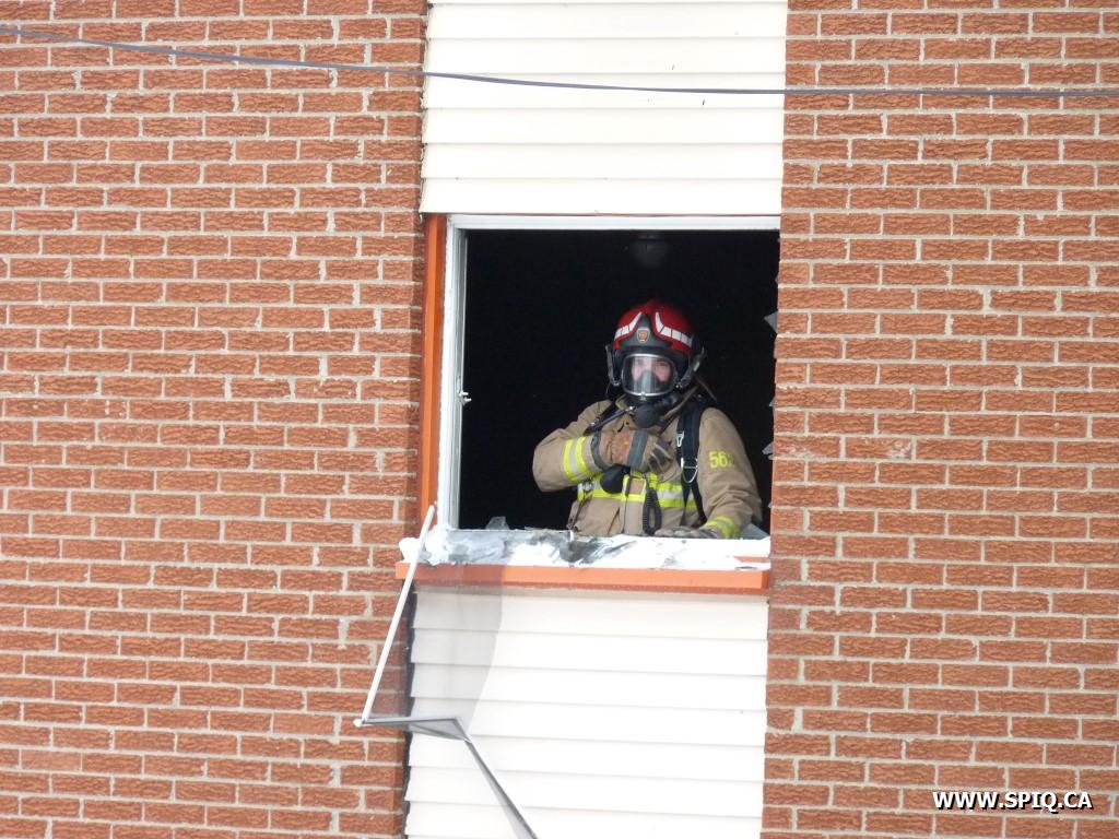 À son arrivée le 209 constate la fumée qui s'échappe du logement et donne l'intervention nÉcessaire. Les équipes du 209 et 215 font une attaque offensive qui porte fruit rapidement et les flammes sont rabattues sans qu'il n'y ait propagation. Les autres équipes complètent l'évacuation et vérifient la propagation.