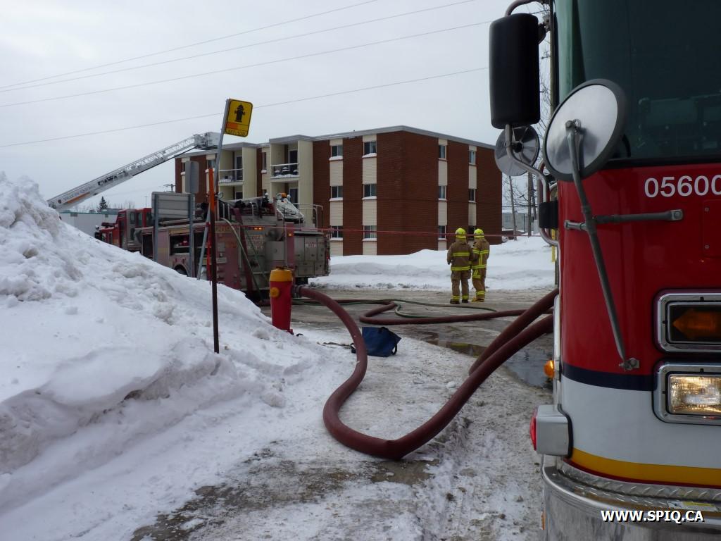 De nombreux appels sont placés au central pour cet incendie avec des détails mentionnant une grosse boucane noire. Les demandes d'évacuation sont faites à chaque appel.