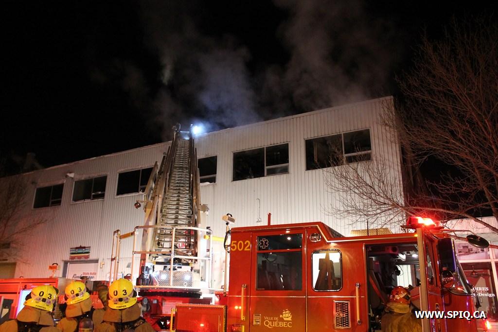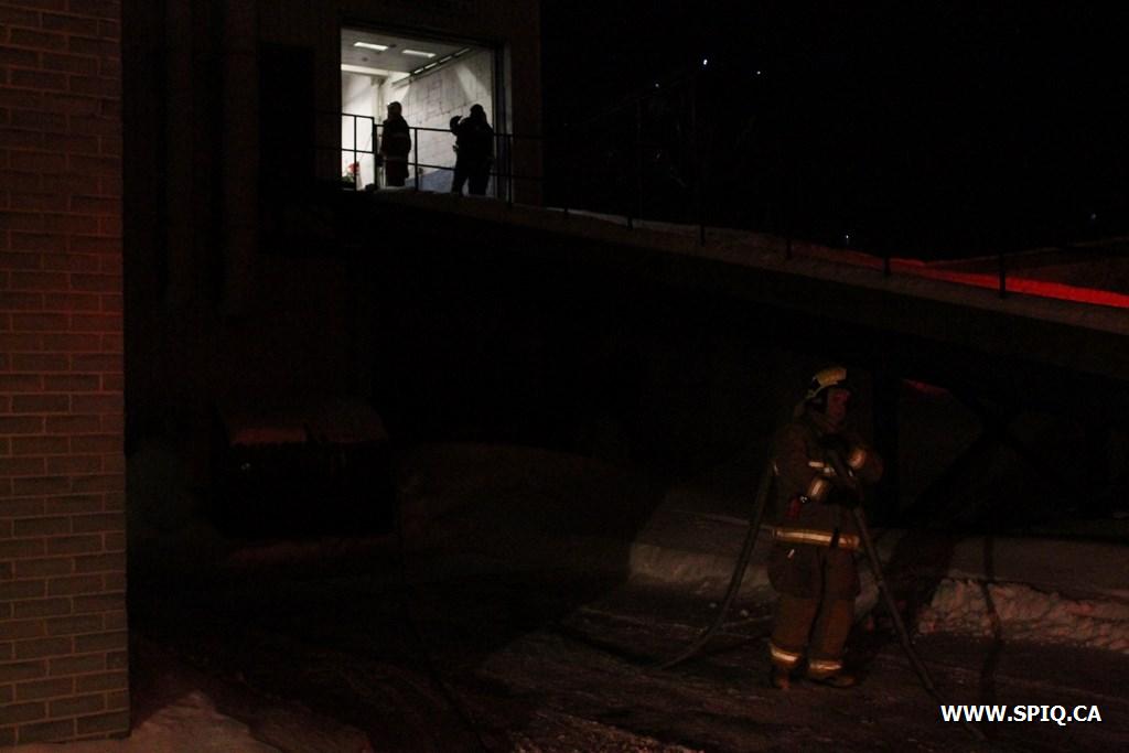 Le plaignant qui place l'appel est sur les lieux: le feu serait pris dans un véhicule à l'intérieur du garage de carrosserie, situé au 3ième étage du bâtiment.