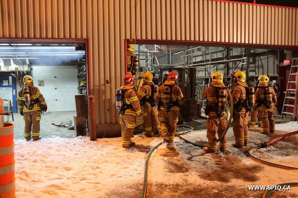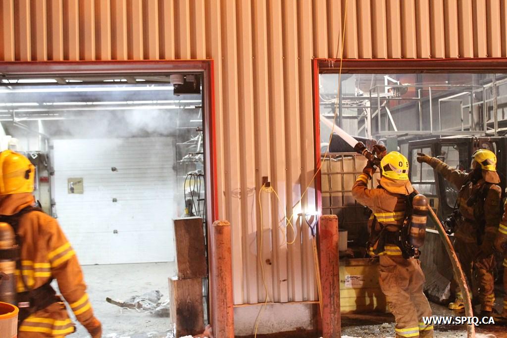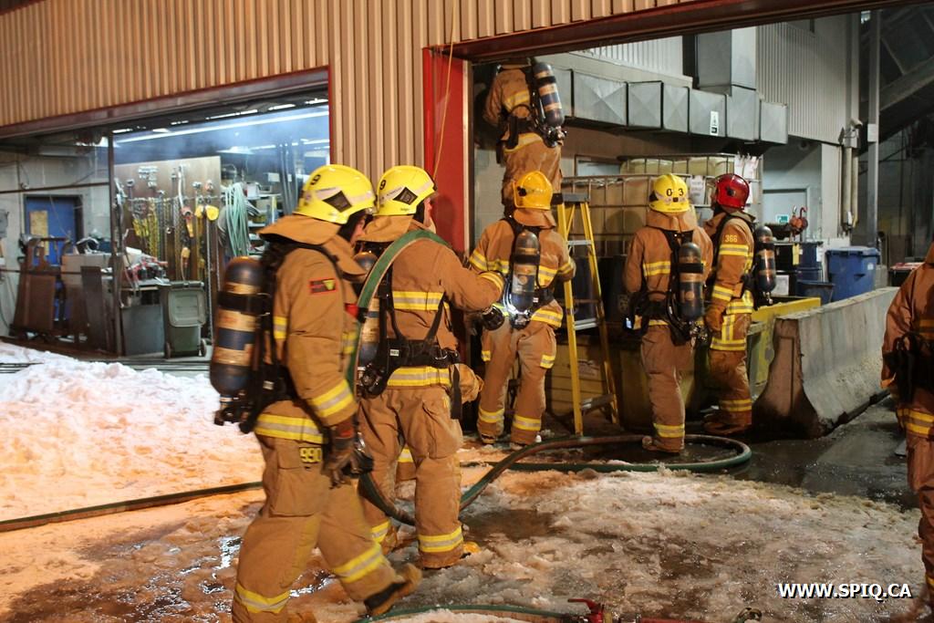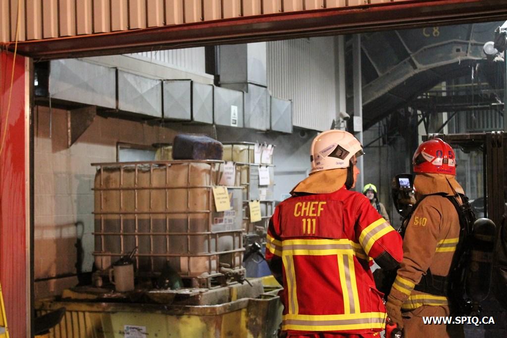 À son arrivée le 111 confirme qu'il y a bel et bien un début d'incendie dans une presse et que cela commence à se propager au système de ventilation.