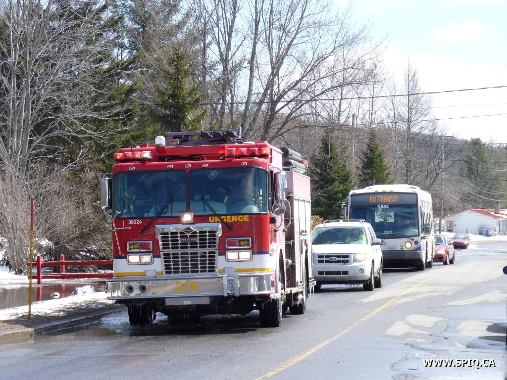 Les véhicules de la caserne 16 avaient été particulièrement sollicités auparavant alors que le 216 répondit à 09h57 à une demande d'assistance des policiers pour aider 2 adultes, un bébé et 1 enfant de 3 ans qui ne pouvaient quitter leur demeure de la rue du Survenant complètement encerclée par l'eau. Ils ont été évacués par le camion-pompe.