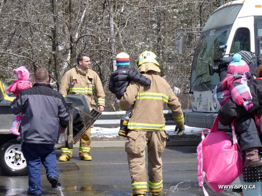 À 11h51, la décision est prise d'évacuer une garderie de 80 enfants dont le stationnement se remplit d'eau dans le secteur de la Rue du Mascaret. Un autobuis du RTC se rend sur place.