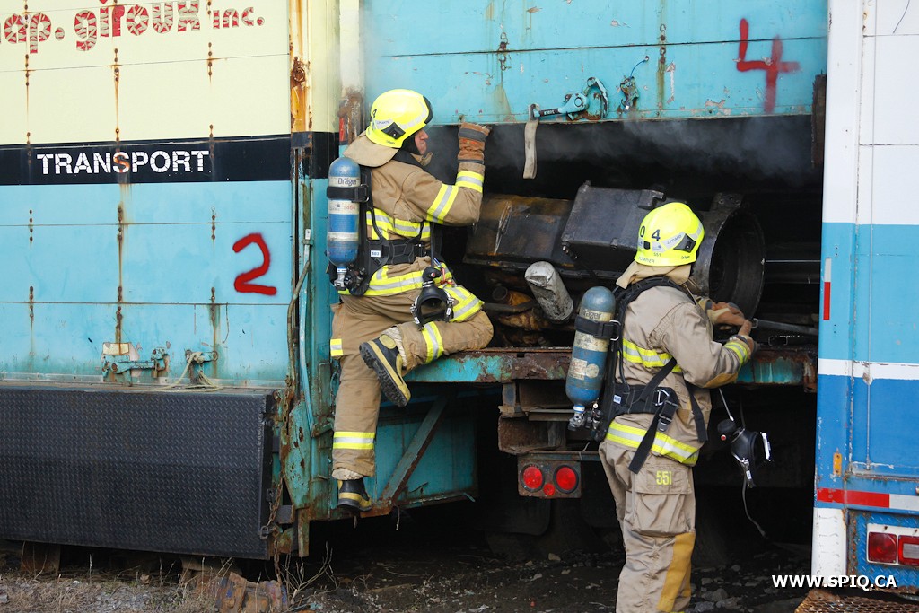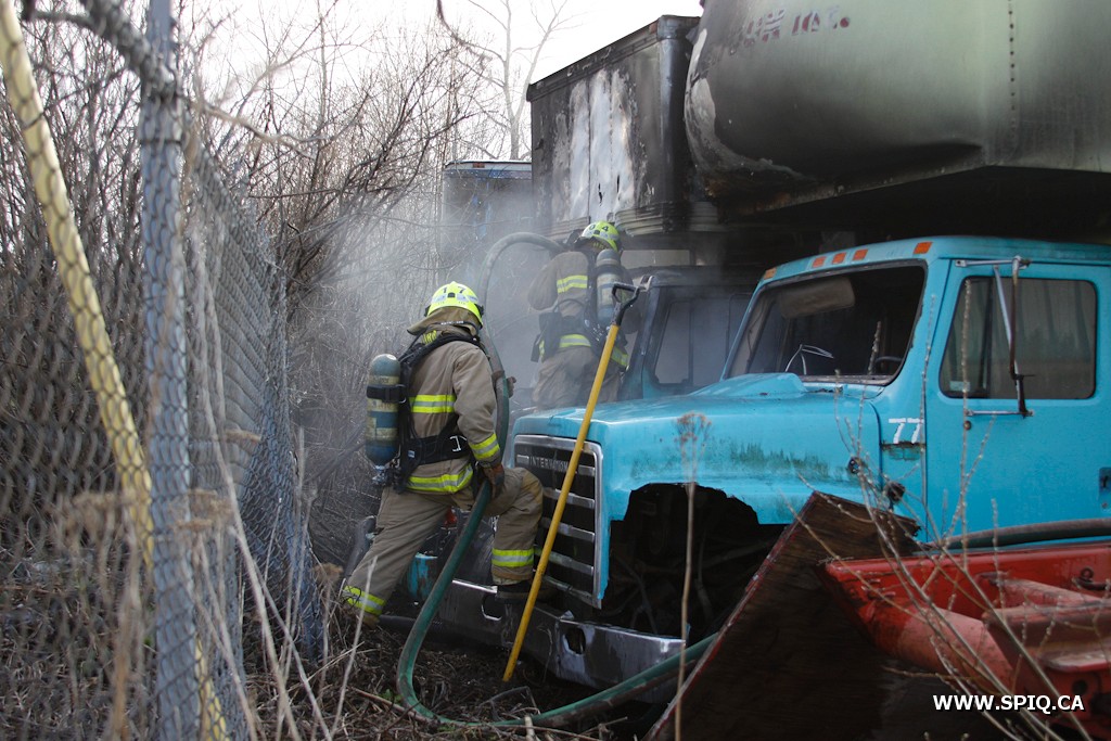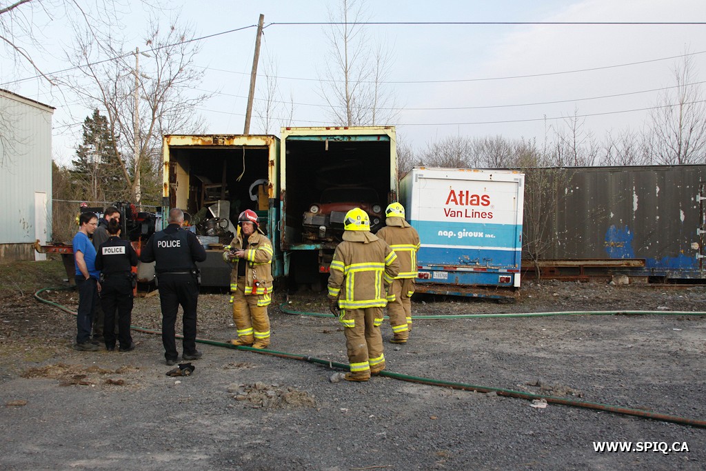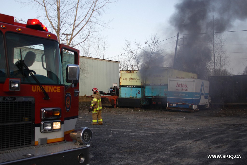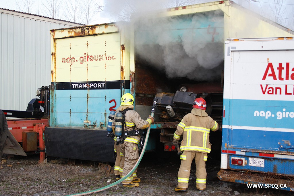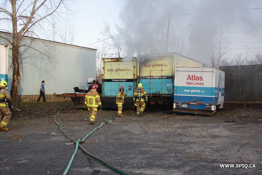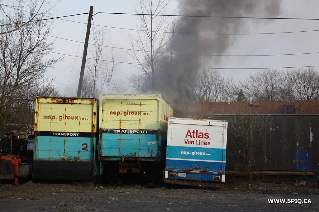 Ce sont deux camions de transport de la compagnie Nap Giroux qui ont été endommagé par les flammes.