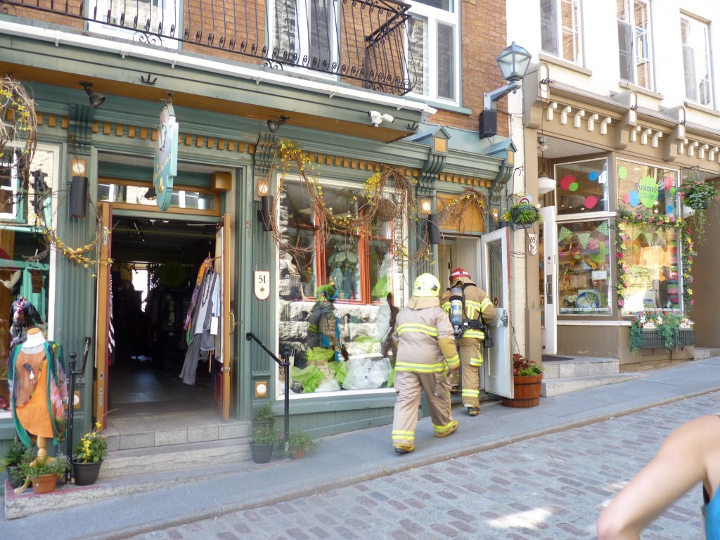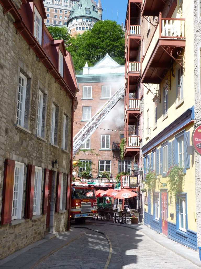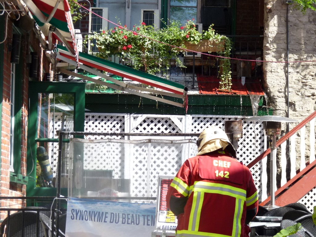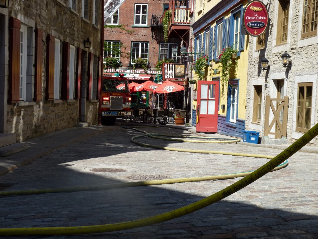 Un jet d'un pouce et demi fut fait et les endroits touchés par le feu bien "douchés". Le courant électrique fut isolé au 51 Sous-le-Fort.
