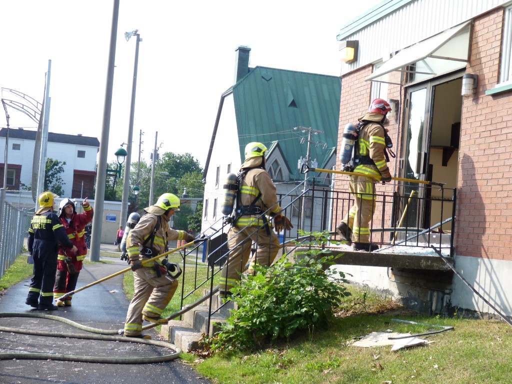 L'appel provient d'un moniteur qui dit voir de la fumée s'échapper d'une bouche d'aération de l'immeuble.