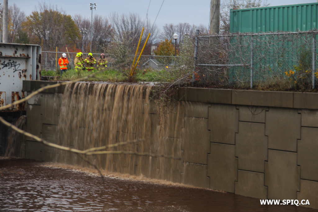 À son arrivée, le Lieutenant Lemay mentionne qu'ils'agit d'une fuite majeure et qu'il croit que le 40 pouces de la ville est perforé.