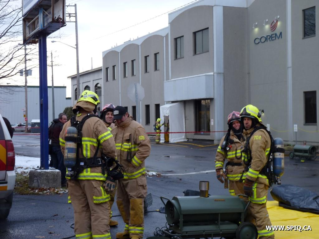 L'appel initial était pour un système d'alarme pour le 203 à l'entreprise Corem à 06h11.