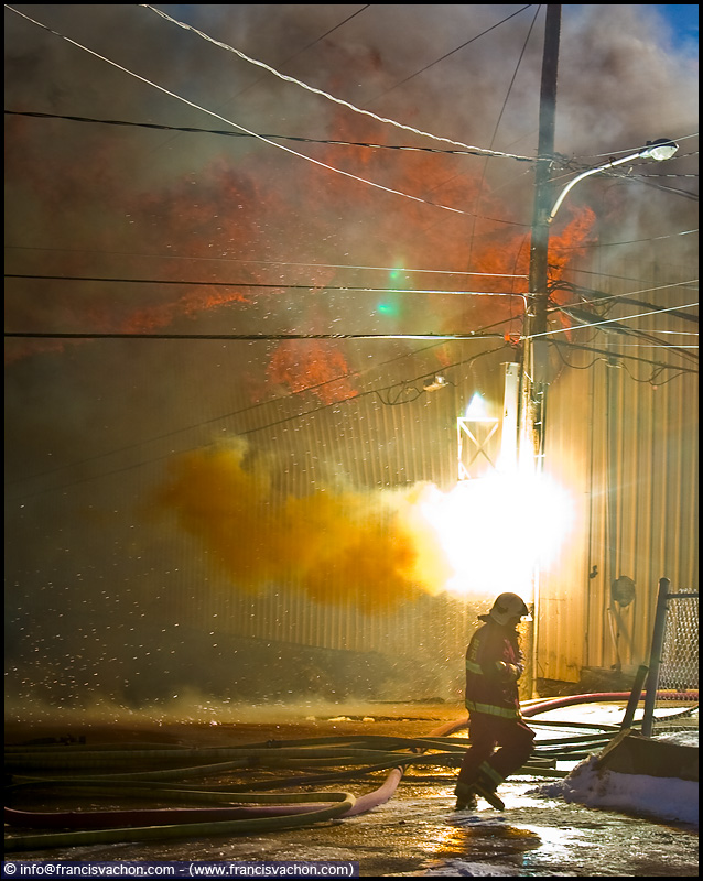 incendie, l'intervention se transforme en une 3ème alarme. Le feu a débuté