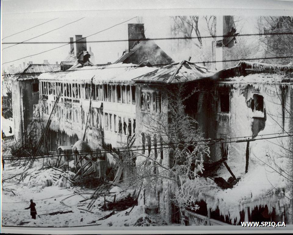 Les renseignements contenus dans cette chronique sont puisés dans l'ouvrage intitulé "Tout feu Tout flamme" rédigé par Madame Lise Pepin et publié le 8 décembre 2000 pour les incendies couvrant la période 1640-1999. Madame Pepin était alors commis à l'emploi du Service de protection contre les incendies de la Ville de Québec. Il s'agit d'un travail de recherche colossal qui est une source inestimable de renseignements sur l'histoire de la protection-incendie de Québec. spiq.ca désire exprimer toute sa gratitude à Madame Pepin pour ce magnifique ouvrage.