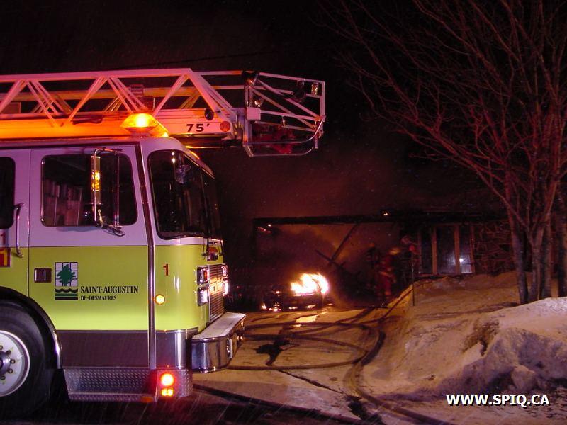 2 alarmes et appel spécial au 4696 chemin Notre-Dame à St-Augustin, maison unifamiliale d'un étage qui subit des dommages très importants: cendres chaudes dans l'abri d'auto. REVOYEZ LE REPORTAGE