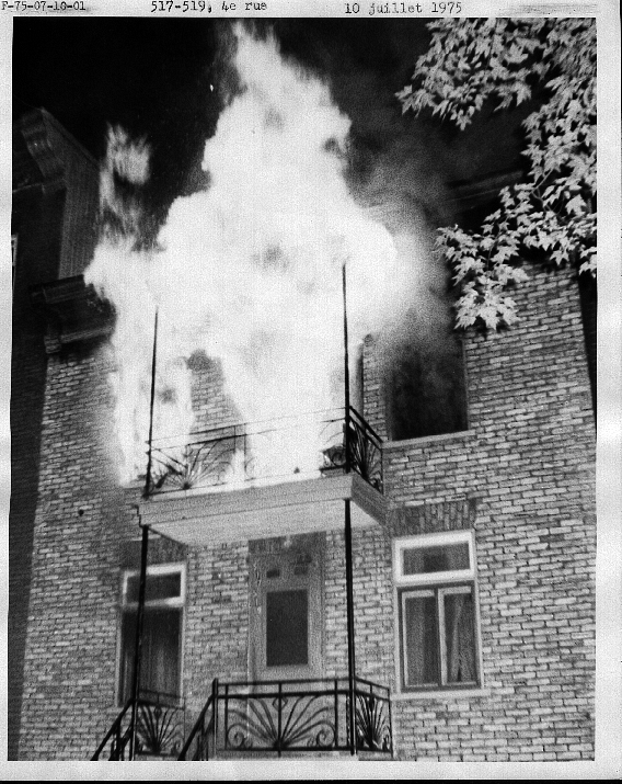 Incendie criminel à l'Armée du Salut au 14 Côte-du-Palais: 31 sauvetages par échelles aériennes et 4 par échelle manuelle. Les dommages sont relativement peu élevés à $20,500.