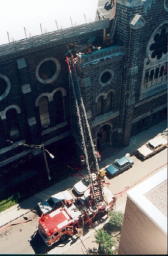 2ème alarme au sous-sol de l'Église Saint-François d'Assise du 1331 1ère Avenue. Des étincelles de soudure ont causé le feu.