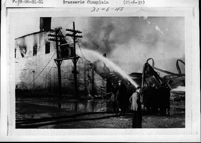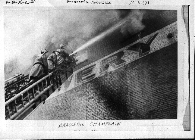 27 pompiers sont blessés en combattant l'incendie qui a complètement détruit la Brasserie Champlain située à l'angle de la Couronne et Prince-Édouard.