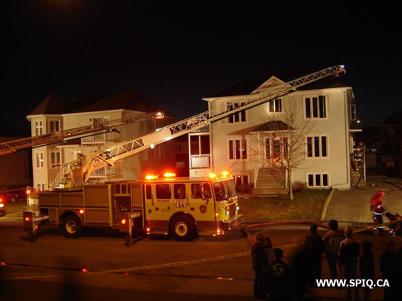 Appartements St Vallier. Durée : 03h42. St Vallier Ouest, 532-540, 4ème alarme: 397,730$, étincelles de coupure.