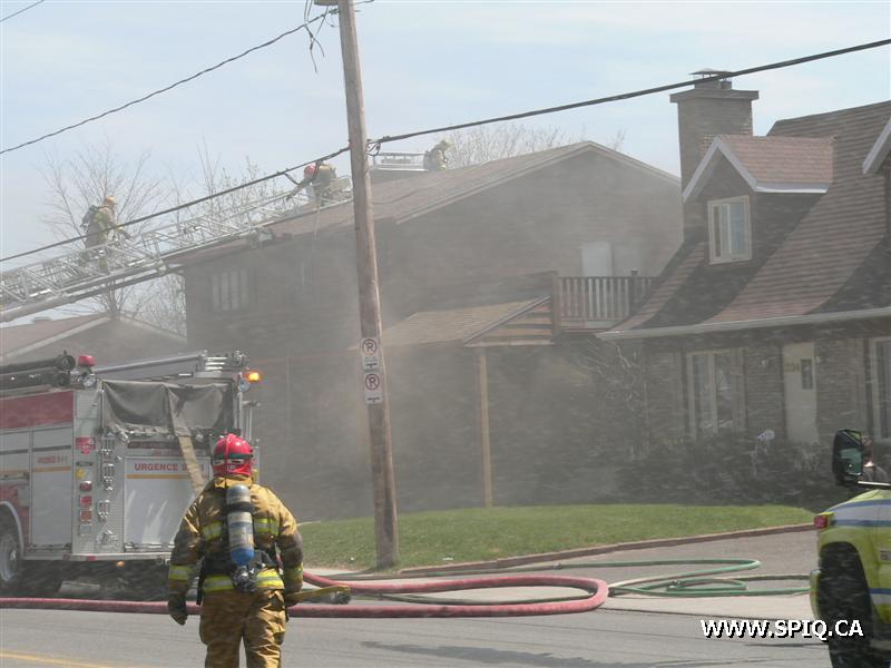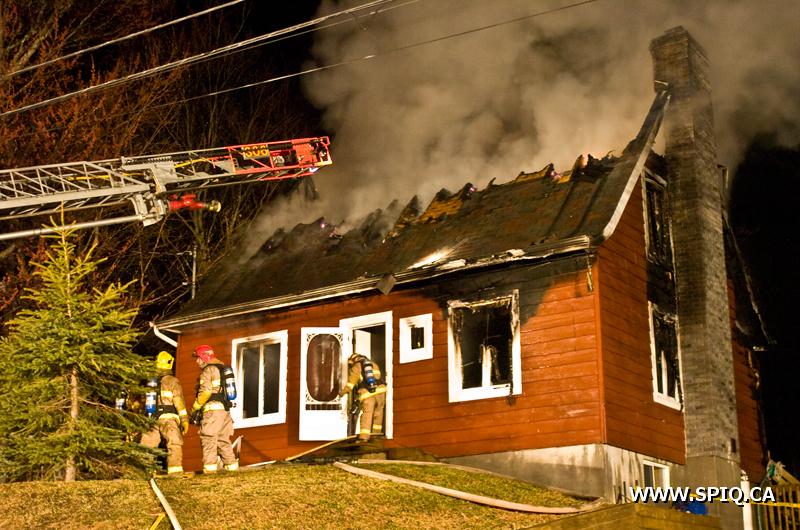 Maison unifamiliale. Archambault, 364, 2ème alarme: 70,000$, pièces pyrotechniques.