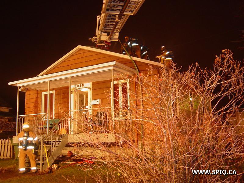 Une défectuosité électrique cause 50,000$ de dommages au 435 chemin Ste-foy. 50 sauvetages dont 3 par civière, 2 à dos de pompiers lors de l'explosion. Durée de 1h36.