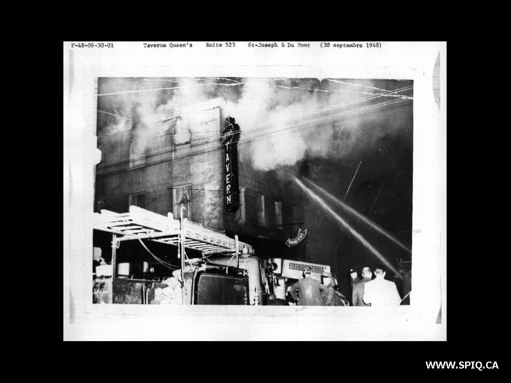 3 personnes perdent la vie dans l'incendie du Queen's Tavern et des Appartements Bélanger, angle St-Joseph et Du Pont. Boite 523.